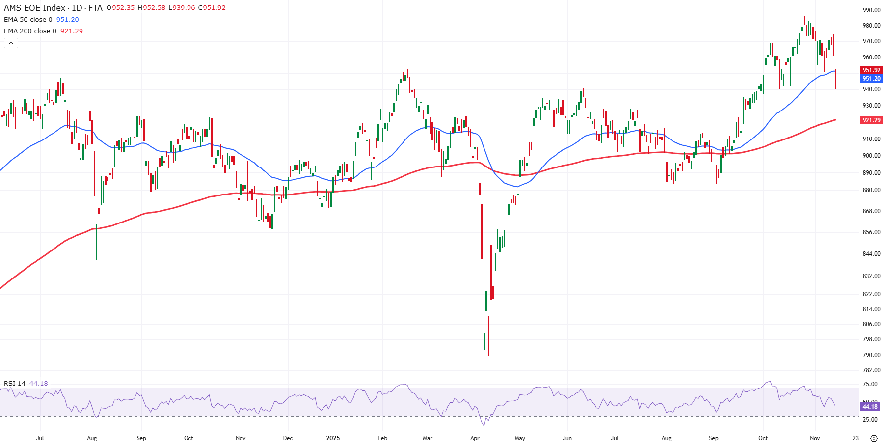 Daarbovenop kwam een nieuwe reeks macro-economische cijfers uit Japan, die lieten zien dat de economie in het derde kwartaal met 0,4% is gekrompen. Hoewel dat minder slecht was dan gevreesd, staat het herstel van Japan duidelijk onder druk. De Nikkei wist de schade uiteindelijk te beperken, maar het sentiment bleef broos.