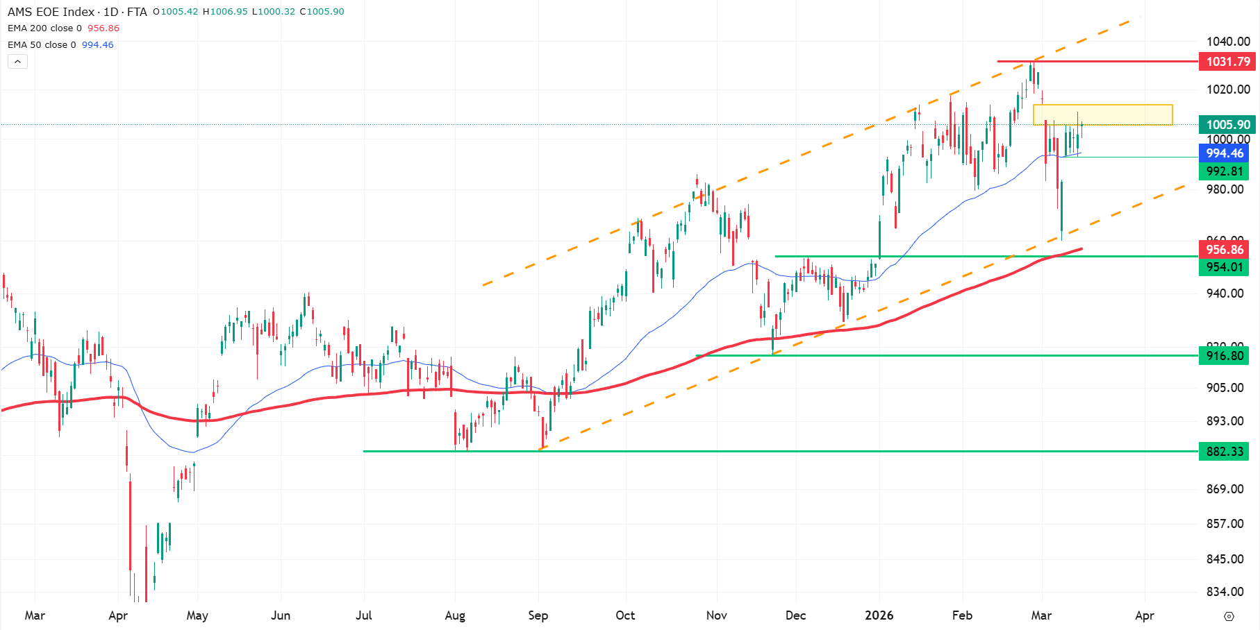 Toch is het beeld nog niet volledig negatief. De index vindt momenteel steun rond de EMA200 en het horizontale steunniveau nabij 954 punten. Dit niveau fungeert als een belangrijke (laatste) verdedigingslinie voor de bulls.