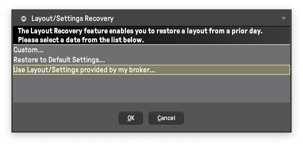 - Selecteer Use Layout/Settings provided by my broker… om de standaardlay-out te herstellen.